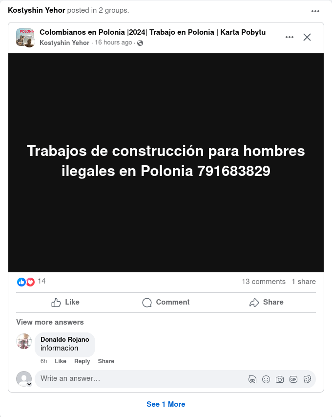 La abundante desinformación en los grupos de Facebook se debe, en parte, a que se censuran ciertas publicaciones. De hecho, uno de los grupos colombianos, con casi 90 mil miembros, ni siquiera es administrado por un coterráneo sino por un ucraniano. Kamila, una polaca que ayuda a los latinos en Polonia desde hace diez años en Facebook, quería publicar allí contenido útil para que los latinos viajen conociendo qué pasa en Polonia y fue bloqueada. “No quieren que los colombianos conozcan la ley para que no puedan defenderse”, explica esta fuente.